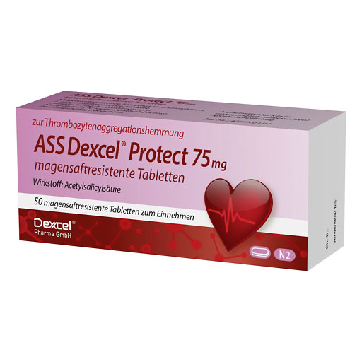 ASS Dexcel Protect 75 mg hemmt u.a. das Zusammenhaften und Verklumpen von Blutplättchen (Thrombozyten) und beugt dadurch der Entstehung von Blutgerinnseln (Thromben) vor (Thrombozytenaggregationshemmung).