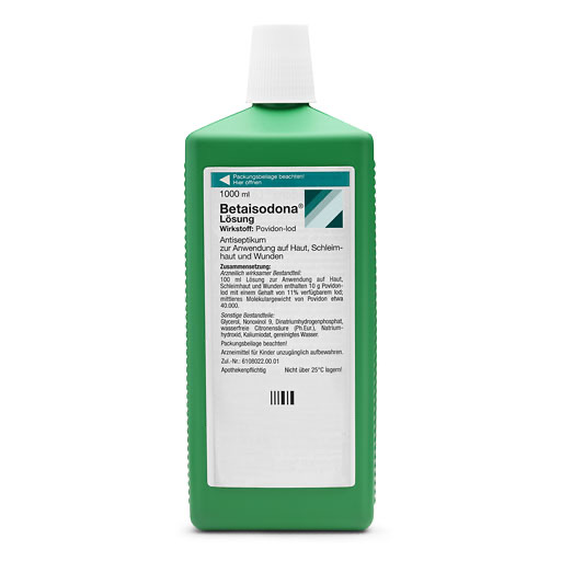 Anwendungsgebiete: Betaisodona® Lösung ist ein keimtötendes Mittel (Antiseptikum) zur Anwendung auf Haut, Schleimhaut und Wunden. Betaisodona® Lösung wird einmalig angewendet zur Desinfektion der intakten äußeren Haut oder Antiseptik der Schleimhaut wie z. B. vor Operationen, Biopsien, Injektionen, Punktionen, Blutentnahmen und Blasenkatheterisierungen. Betaisodona® Lösung wird wiederholt zeitlich begrenzt angewendet zur antiseptischen Wundbehandlung (z. B. Druckgeschwüre, Unterschenkelgeschwüre), bei Verbrennungen, infizierten und superinfizierten Hauterkrankungen sowie zur chirurgischen Händedesinfektion.