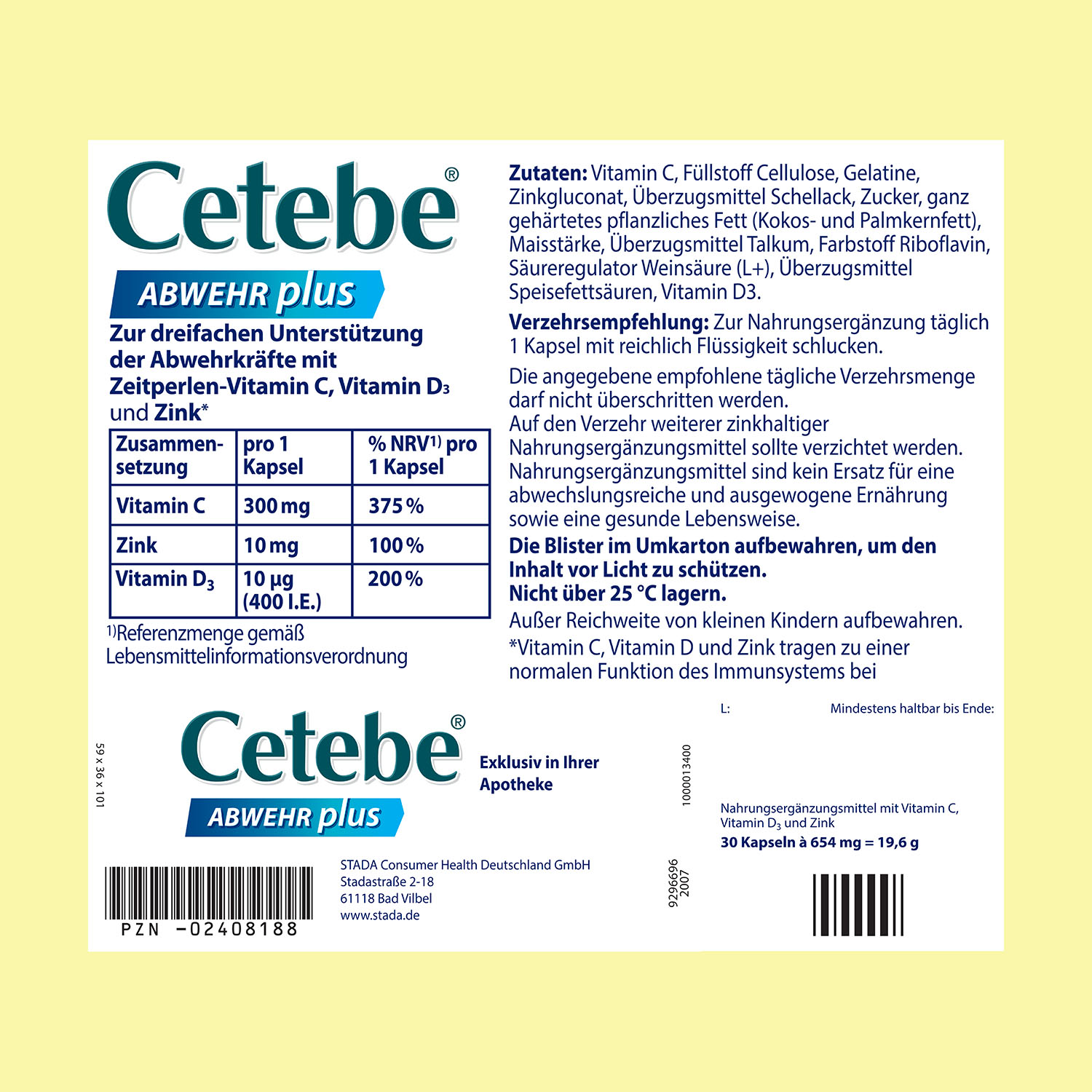 Welche Inhaltsstoffe enthält Cetebe® ABWEHR plus?