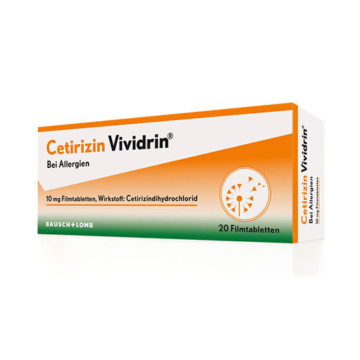 Cetirizindihydrochlorid ist der Wirkstoff von Cetirizin Vividrin® 10 mg Filmtabletten. Cetirizin Vividrin® 10 mg Filmtabletten ist ein Antiallergikum und angezeigt zur Linderung von Nasen- und Augensymptomen bei saisonaler und ganzjähriger allergischer Rhinitis sowie zur Linderung von Urtikaria (Nesselsucht).