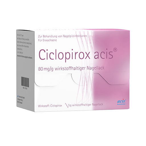 Anwendungsgebiete: Ciclopirox acis Nagellack wurde speziell für die Behandlung von Nagelpilzinfektionen entwickelt. Der Wirkstoff Ciclopirox durchdringt die Nagelplatte und hat eine pilzabtötende Wirkung auf alle wichtigen Erreger, die Nagelpilzinfektionen verursachen. Ciclopirox acis Nagellack wird für die Behandlung von Nagelpilzinfektionen angewendet.