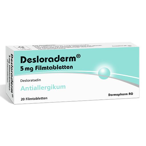 Mit dem bewährten Wirkstoff Desloratadin blockt Desloraderm® das Histamin (Antihistaminikum). Desloraderm® enthält das Antihistaminikum Desloratadin, das eine bereits umgewandelte Form von Loratadin ist. Der Körper muss daher den Wirkstoff nicht mehr zusätzlich umwandeln und die Wirkung kann schneller eintreten. Desloratadin lindert allergische Reaktionen wie beispielsweise juckende, gerötete Augen oder Fließschnupfen. Es wird zusätzlich zur Behandlung von Beschwerden eingesetzt, die mit einer Nesselsucht einhergehen. Hierzu zählen Juckreiz und Quaddelbildung.