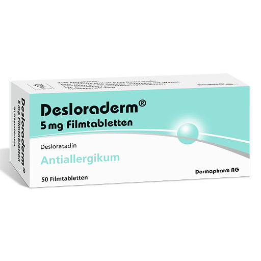 Mit dem bewährten Wirkstoff Desloratadin blockt Desloraderm® das Histamin (Antihistaminikum). Desloraderm® enthält das Antihistaminikum Desloratadin, das eine bereits umgewandelte Form von Loratadin ist. Der Körper muss daher den Wirkstoff nicht mehr zusätzlich umwandeln und die Wirkung kann schneller eintreten. Desloratadin lindert allergische Reaktionen wie beispielsweise juckende, gerötete Augen oder Fließschnupfen. Es wird zusätzlich zur Behandlung von Beschwerden eingesetzt, die mit einer Nesselsucht einhergehen. Hierzu zählen Juckreiz und Quaddelbildung.