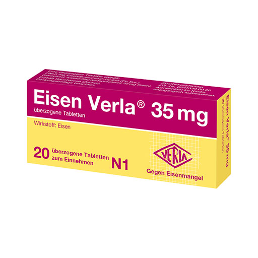 Eisen Verla® 35 mg bewährt sich seit vielen Jahren als Arzneimittel mit höchsten Qualitätsstandards in der Therapie von Eisenmangel. Eisen wird am besten vom Körper aufgenommen, wenn kleinere Mengen über den Tag verteilt eingenommen werden. Durch die niedrige Dosierung von Eisen Verla® 35 mg ist es individuell gut dosierbar und kann ganz nach Bedarf mehrmals täglich eingenommen werden. Die überzogene Tablette hinterlässt zusätzlich keinen Beigeschmack nach Eisen, eine gute Alternative für alle, die Eisengeschmack als unangenehm empfinden. Außerdem wird in Eisen Verla® 35 mg ausschließlich zweiwertiges Eisen (Fe2+) für eine gute Aufnahme und Bioverfügbarkeit im Körper verwendet.