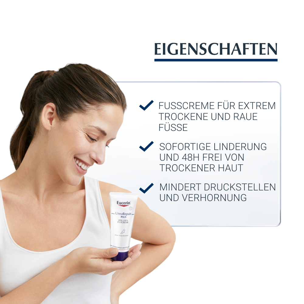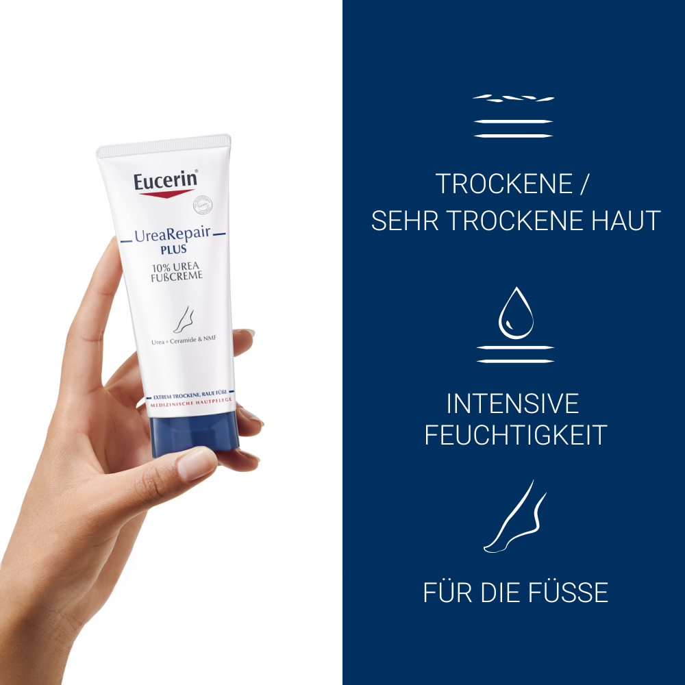 Eucerin UreaRepair 10% Urea Fußschaum – 48h Pflege für trockene Füße mit feuchtigkeitsspendender Urea und beruhigendem Duft.