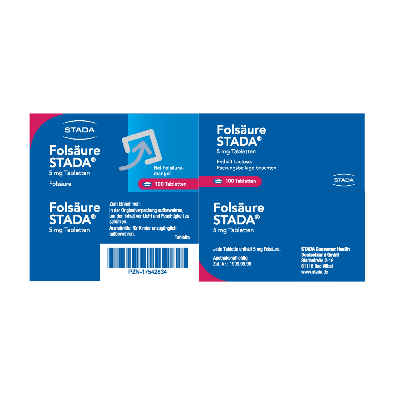 Bei Folsäure handelt es sich um ein B-Vitamin mit lebenswichtigen Aufgaben in den Körperzellen. Welche lebenswichtigen Aufgaben sind das genau? Folsäure fördert den Aufbau von Stoffwechselzwischenprodukten, die für die Körperzellen wichtig sind – denn ohne Folsäure ist keine Zellteilung und -erneuerung möglich. Die Bildung der roten Blutkörperchen und der Blutplättchen (Thrombozyten) gehört zu den wichtigsten Aufgaben der Folsäure. Da Folsäure bereits in den ersten Tagen einer Schwangerschaft für die Zelldifferenzierung und die Wachstumsprozesse eines Embryos benötigt wird, kann ein Folsäuremangel in der Schwangerschaft schnell auftreten. Folsäure STADA® 5 mg Tabletten sorgen für eine schnelle und effektive Versorgung mit Folsäure zur Therapie eines Folsäuremangels. Folsäure STADA® 5 mg Tabletten sind gut verträglich und leicht einzunehmen.