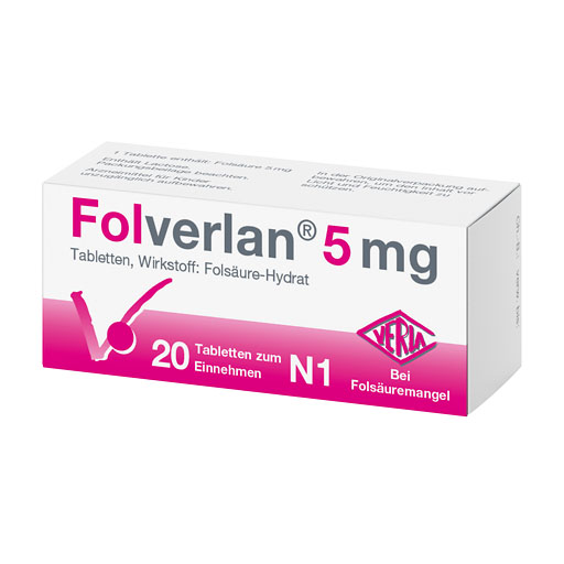Folverlan® 5 mg wird angewendet zur Behandlung von Folsäuremangelzuständen, die diätetisch nicht behoben werden können.
