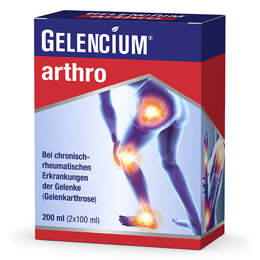 Mehr als 15 Millionen Deutsche leiden ab der Mitte des Lebens an chronischen Gelenkschmerzen, meist in Knie, Hüfte, Schulter oder Händen. In 9 von 10 Fällen ist Arthrose die Ursache. GELENCIUM® ARTHRO kann bei allen Formen von Gelenkverschleiß helfen. Das moderne Arzneimittel wurde zugelassen zur gezielten natürlichen Behandlung von Arthrose in allen Gelenken. Das Geheimnis von GELENCIUM® ARTHRO ist der moderne Arthro-3fach-Komplex, der in den betroffenen Gelenken eine einzigartige Mehrfachwirkung entfalten kann: