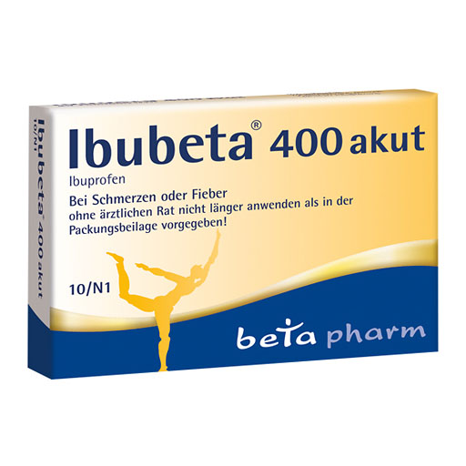Anwendungsgebiete: Ibubeta 400 akut wird angewendet bei leichten bis mäßig starken Schmerzen wie Kopfschmerzen, Zahnschmerzen, Regelschmerzen und Fieber.