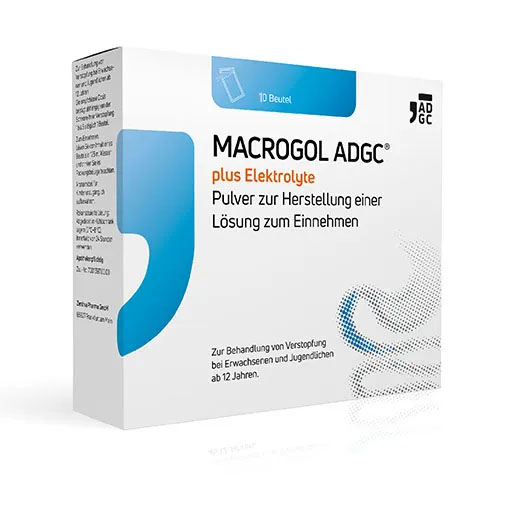 Anwendung: Jeden Beutel MACROGOL ADGC® plus Elektrolyte löst man in 125 ml Wasser in einem Glas auf. Das Pulver rührt man im Wasser mit einem Löffel um, bis es sich gelöst hat. Erwachsene und Jugendliche sollten täglich nicht mehr als 3 Beutel in einzelnen Dosen einnehmen. Bei einer vom Arzt angeordneten längerfristigen Anwendung kann die Dosis auf 1 oder 2 Beutel täglich reduziert werden.