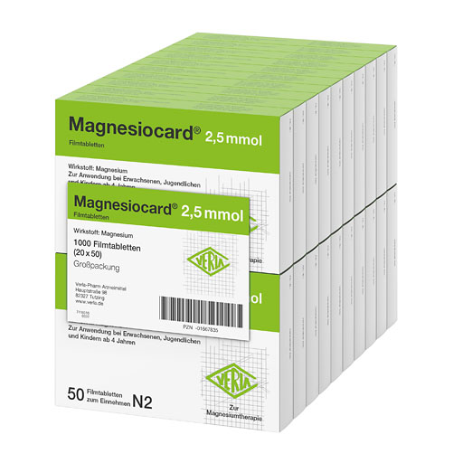 Magnesiocard® 2,5 mmol bewährt sich seit vielen Jahren als Arzneimittel mit höchsten Qualitätsstandards in der Therapie von Magnesiummangelzuständen. Magnesium wird am besten vom Körper aufgenommen, wenn kleinere Mengen über den Tag verteilt eingenommen werden. Durch die niedrige Dosierung von Magnesiocard® 2,5 mmol ist es individuell gut dosierbar und kann ganz nach Bedarf zu verschiedenen Tageszeiten eingenommen werden. Dies erhöht die Bioverfügbarkeit von Magnesium, da kleine Mengen effektiver aufgenommen werden können als große Einmal-Dosen. Magnesiocard® 2,5 mmol enthält zudem das organische Magnesiumaspartat-Hydrochlorid für eine gute Aufnahme im Körper.