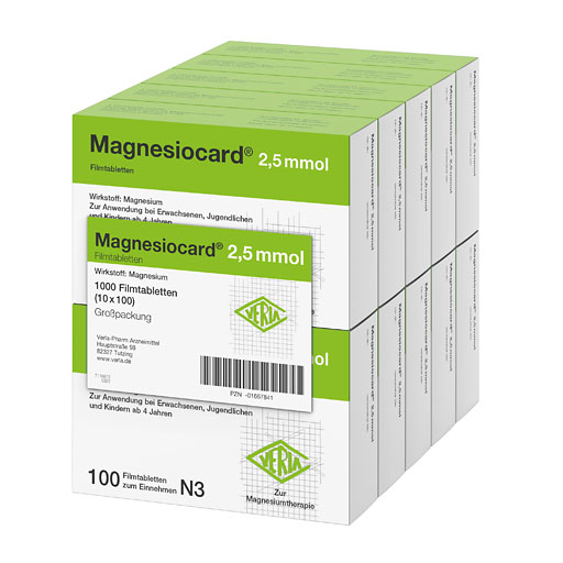 Magnesiocard® 2,5 mmol bewährt sich seit vielen Jahren als Arzneimittel mit höchsten Qualitätsstandards in der Therapie von Magnesiummangelzuständen. Magnesium wird am besten vom Körper aufgenommen, wenn kleinere Mengen über den Tag verteilt eingenommen werden. Durch die niedrige Dosierung von Magnesiocard® 2,5 mmol ist es individuell gut dosierbar und kann ganz nach Bedarf zu verschiedenen Tageszeiten eingenommen werden. Dies erhöht die Bioverfügbarkeit von Magnesium, da kleine Mengen effektiver aufgenommen werden können als große Einmal-Dosen. Magnesiocard® 2,5 mmol enthält zudem das organische Magnesiumaspartat-Hydrochlorid für eine gute Aufnahme im Körper.