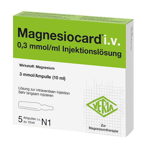 Magnesiocard® i.v. wird angewendet bei nachgewiesenem Magnesiummangel, wenn er Ursache für Störungen der Muskeltätigkeit (wie neuromuskuläre Störungen, Wadenkrämpfe) ist und eine orale Therapie nicht möglich ist.