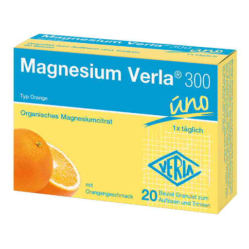 Eine optimale Versorgung mit Magnesium ist sehr wichtig, denn es trägt unter anderem zu einer normalen Muskelfunktion, einer normalen Funktion des Nervensystems und zu einem normalen Energiestoffwechsel bei. Magnesium leistet auch einen Beitrag zur Verringerung von Müdigkeit und Erschöpfung. Dank der hohen Dosierung von 300 mg Magnesium ist Magnesium Verla® 300 Typ Orange bestens geeignet, um Sie bei Ihrer täglichen Ernährung und Versorgung mit Magnesium sinnvoll zu unterstützen.