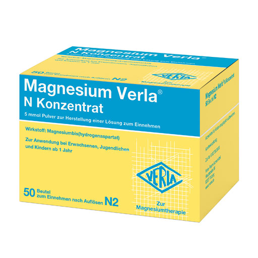 Magnesium Verla® N Konzentrat bewährt sich seit vielen Jahren als Arzneimittel mit höchsten Qualitätsstandards in der Therapie von Magnesiummangelzuständen. Das hochwertige Pulver schmeckt fruchtig nach Mandarine und kann einfach mit Wasser angerührt werden. So wird auch die tägliche Flüssigkeitsaufnahme unterstützt. Das aufgelöste Pulver ist außerdem nicht brausend, eine gute Alternative für alle, die Brausetabletten als unangenehm empfinden. Durch die moderate Dosierung von Magnesium Verla® N Konzentrat ist es individuell gut dosierbar und kann ganz nach Bedarf über den Tag verteilt getrunken werden. Dies erhöht die Bioverfügbarkeit von Magnesium, da kleine Mengen effektiver aufgenommen werden können als große Einmal-Dosen. Zusätzlich wird in Magnesium Verla® N Konzentrat ausschließlich organisches Magnesium für eine gute Aufnahme und Bioverfügbarkeit im Körper verwendet.