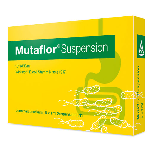 Mutaflor® Suspension ist ein Mittel zur Behandlung von Durchfallerkrankungen bei Säuglingen, Kleinkindern und Kindern. Das Arzneimittel enthält die natürliche Bakterienkultur E. coli Stamm Nissle 1917 in hoher Konzentration. Das Darmbakterium bildet unter anderem antimikrobielle Substanzen, die den Darm bei der Abwehr von Durchfallerregern unterstützen. Die Darmflora wird stabilisiert und das natürliche Gleichgewicht im Darm wieder hergestellt. Das erhöht den Schutz des Darms gegen die Ansiedlung krankheitserregender Keime. Studien belegen, dass die Dauer der Durchfallerkrankung durch Anwendung von Mutaflor® deutlich verkürzt werden kann.