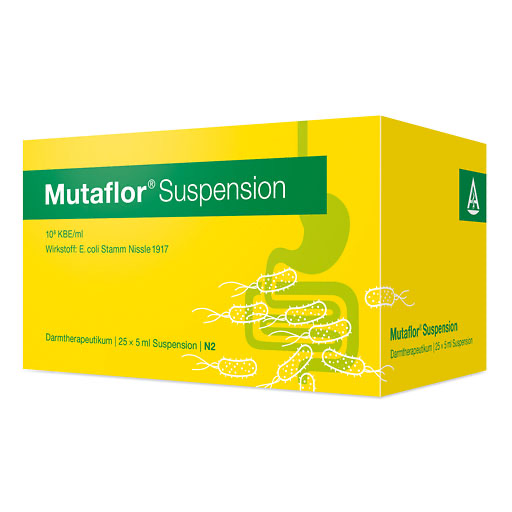 Mutaflor® Suspension ist ein Mittel zur Behandlung von Durchfallerkrankungen bei Säuglingen, Kleinkindern und Kindern. Das Arzneimittel enthält die natürliche Bakterienkultur E. coli Stamm Nissle 1917 in hoher Konzentration. Das Darmbakterium bildet unter anderem antimikrobielle Substanzen, die den Darm bei der Abwehr von Durchfallerregern unterstützen. Die Darmflora wird stabilisiert und das natürliche Gleichgewicht im Darm wieder hergestellt. Das erhöht den Schutz des Darms gegen die Ansiedlung krankheitserregender Keime. Studien belegen, dass die Dauer der Durchfallerkrankung durch Anwendung von Mutaflor® deutlich verkürzt werden kann.