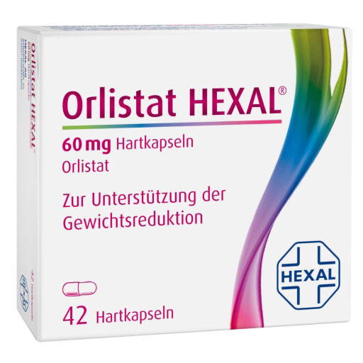 Orlistat HEXAL 60 mg Hartkapseln: Wirkstoff: Orlistat. Anwendungsgebiet: Dient der Gewichtsreduktion und wird bei übergewichtigen Erwachsenen ab 18 Jahren mit einem Body-Mass-Index (BMI) von 28 od. darüber angewendet. Sollte in Verbindung mit einer fett- und kalorienreduzierten Ernährung angewendet werden.