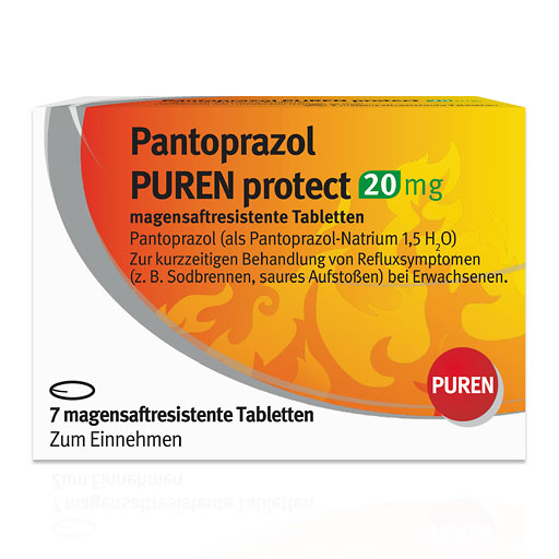 Pantoprazol PUREN Protect ist ein Arzneimittel zur Behandlung von Sodbrennen und säurebedingten Magenbeschwerden. Der enthaltene Wirkstoff Pantoprazol gehört zur Gruppe der Protonenpumpenhemmer (PPI) und reduziert die übermäßige Produktion von Magensäure. Dies hilft, Beschwerden wie saures Aufstoßen, Magenschmerzen und ein brennendes Gefühl in der Speiseröhre zu lindern. Dank der gezielten Wirkung auf die Magensäureproduktion schützt Pantoprazol PUREN Protect die Magenschleimhaut und trägt zu einem verbesserten Wohlbefinden bei.