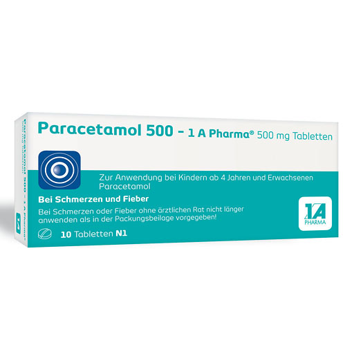 Anwendungsgebiete: symptomatische Behandlung von leichten bis mäßig starken Schmerzen wie Kopfschmerzen, Zahnschmerzen, Regelschmerzen und Fieber. Paracetamol 500 - 1 A Pharma® soll ohne ärztlichen oder zahnärztlichen Rat nur wenige Tage und nicht in erhöhter Dosis eingenommen werden.
