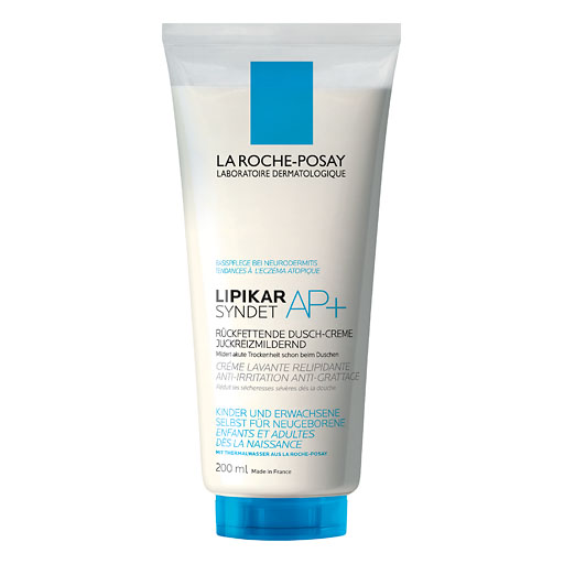Lipikar SYNDET AP+ ist eine Dusch-Creme für Neugeborene, Babys, Kinder und Erwachsene mit atopischer, zu Neurodermitis neigender Haut.