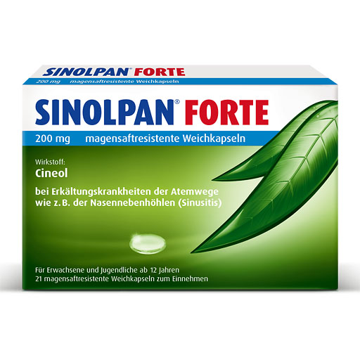 Die Sinolpan® Weichkapsel ist klein und daher besonders einfach einzunehmen – gerade auch für Menschen mit Schluckbeschwerden. Sie schont die Magenschleimhaut und löst sich erst im Darm auf und gibt ihren wertwollen Wirkstoff in den Kreislauf ab. Unangenehmes Aufstoßen kann somit reduziert werden. Cineol wirkt an den sogenannten Becherzellen in den oberen Atemwegen. Dort hemmt es die Schleimproduktion und bekämpft die Entzündung.