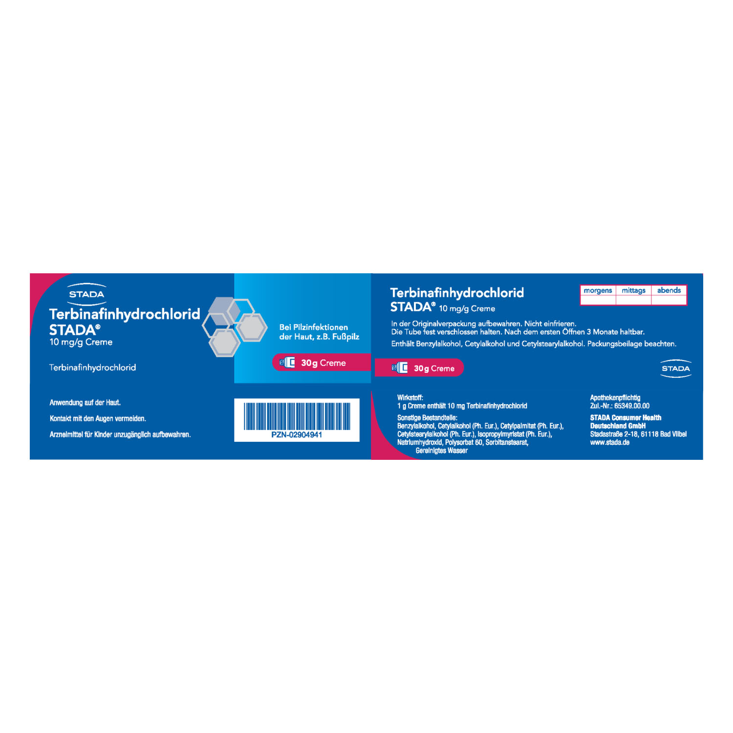 Terbinafinhydrochlorid STADA 10 mg/g Creme kann 1- oder 2-mal täglich aufgetragen werden. Die Creme soll in einer dünnen Schicht auf die befallene Haut und den umgebenden Bereich aufgetragen und anschließend leicht eingerieben werden.