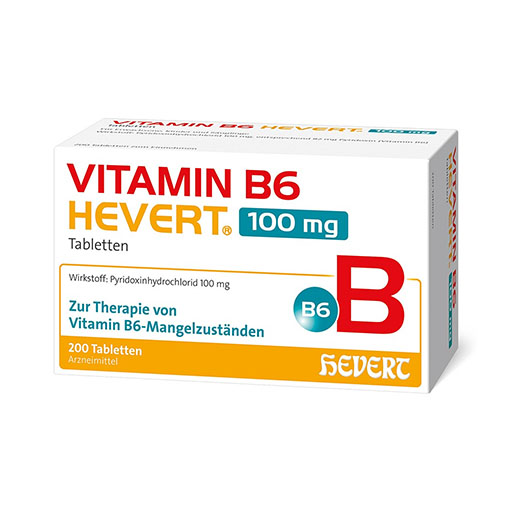 Vitamin B6 Hevert 100 mg verhindert oder beseitigt einen Mangelzustand, wenn ein erhöhter Bedarf an Vitamin B6 oder eine pyridoxinabhängige Stoffwechselstörung besteht. Steht genügend Vitamin B6 zur Verfügung, werden die notwendigen Zellbausteine bereitgestellt, der Stoffwechsel aktiviert, Energiespeicher aufgefüllt sowie Blutbildung, Nerven- und Immunsystem gestärkt. Auf diese Weise fördert Vitamin B6 die gesunde Entwicklung und Regeneration des Körpers. Das hochdosierte Vitaminpräparat beseitigt Störungen im Nervensystem und normalisiert so die Kommunikation zwischen Nerven, Zellen, Geweben und Organen.