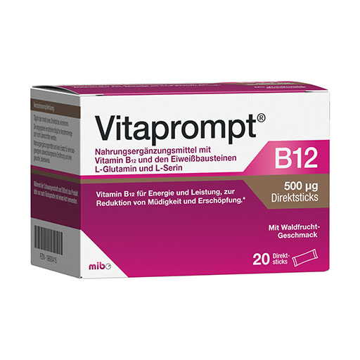 • Zur bestmöglichen Nahrungsergänzung empfehlen wir, Vitaprompt® B12 Direktsticks über einen längeren Zeitraum einzunehmen.