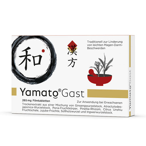 Sie stehen mit Ihrem Magen-Darm-Trakt auf Kriegsfuß? Yamato®Gast kann Ihnen helfen, dass Sie wieder Frieden schließen. Über Jahrhunderte hinweg traditionell angewendet, kombiniert die bewährte Rezeptur aus Japan acht ostasiatische Arzneipflanzen. Bei leichten Magen-Darm-Beschwerden wie Appetitlosigkeit, Unwohlsein, Völlegefühl und Blähungen kann Yamato®Gast dank seiner einzigartigen Zusammensetzung seine Wirkung entfalten – und das ohne Schöllkraut und ohne Alkohol.